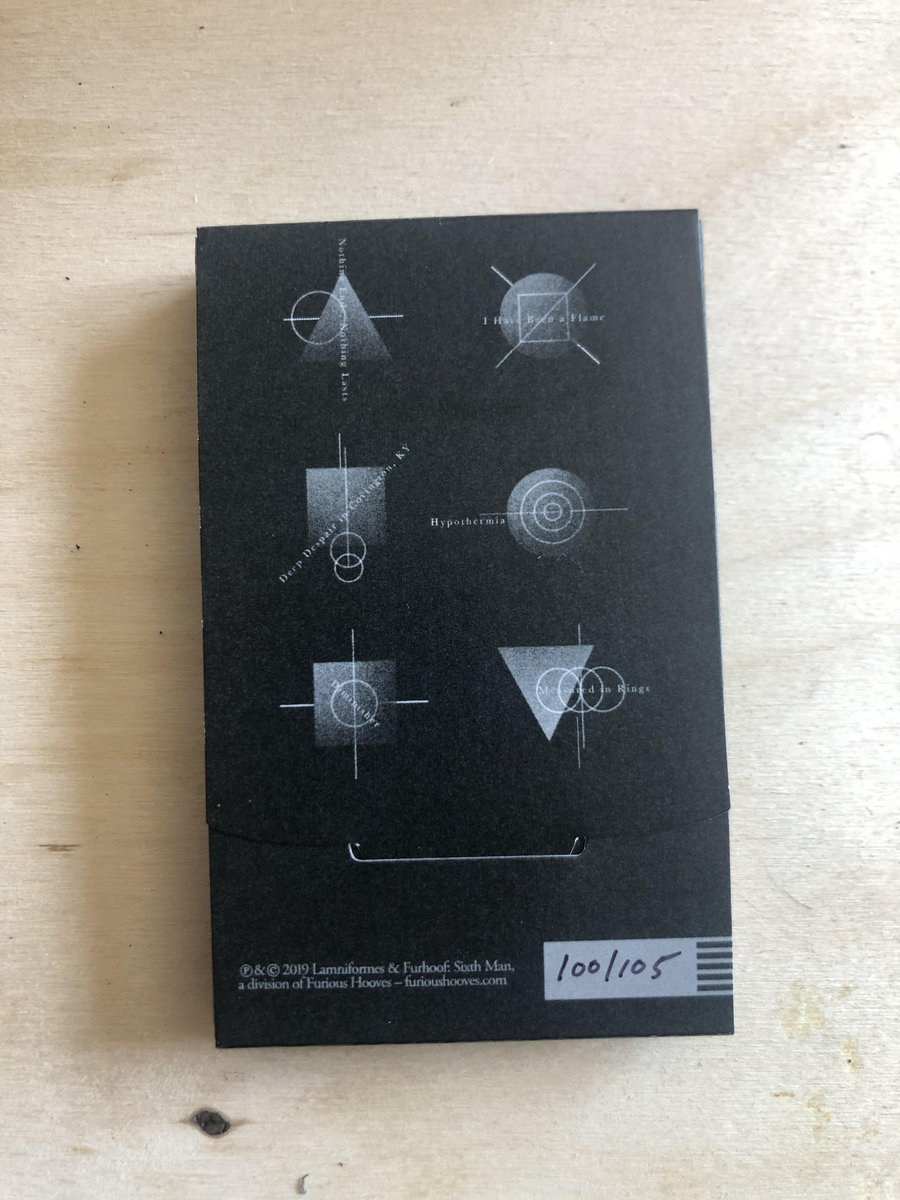 The cassette version of Sisyphean with beautiful packaging designed by Joseph Klomes, with three double sided lyric cards. This cassette is a product of Furious Hooves, I am selling my live show inventory here, but if I run out I urge you to buy from their stock on their own bandcamp page.